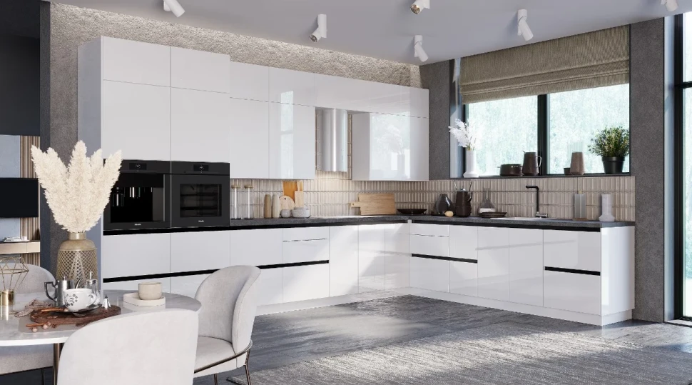 Ручки выбирают без острых выступов: скобы с плавной геометрией, интегрированные профили или gola-система. Длинные «крючки» и острые «кнопки» повышают риск зацепов. Доводчики и ограничители угла на петлях снижают вероятность прищемления пальцев и ударов фасадами. На «детской высоте» (60–90 см от пола) предпочтительны фронты без острых ребер.